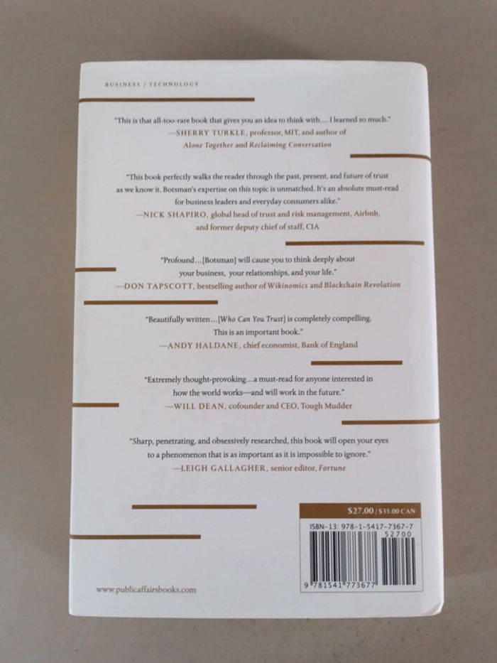 Who can you trust ? Livre grand format. Prix neuf 27 $ US. Voici le lien pour voir tous mes livres : #romain75015_Livres. Envoi rapide et soigné bien protégé pour le transport. N'hésitez pas à faire un lot pour avoir des réductions et mutualiser les frais de port.