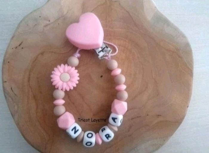 Attache tétine en silicone personnalisé au prénom de votre enfant (envoyez moi un message pour la personnalisation) Possibilité de rajouter un adaptateur en silicone pour les tétines Mam (+0,75€) (me contacter avant l'achat pour que je modifie le prix) Délais de fabrication et d'envoi : 48h maximum Les couleurs peuvent être changées à votre demande. L'attache tétine ne sera faites qu'une fois le paiement validé, une photo vous sera envoyée avant l'envoi du colis.