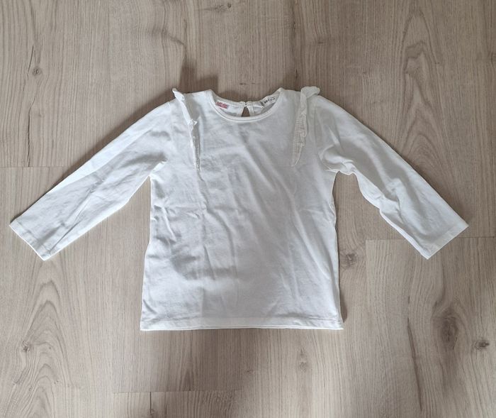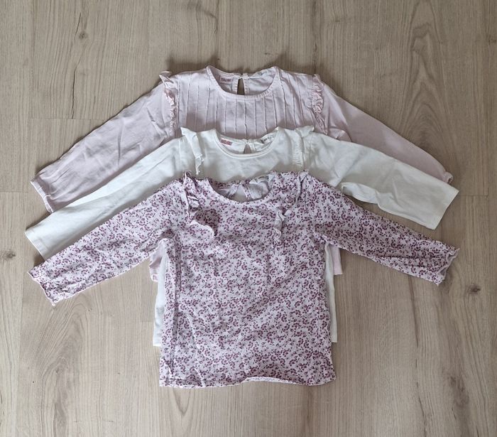 Bonjour 😊 A vendre ce lot de trois top à manches longues Mango, en taille 24 mois soit 92 cm. Tous en très bon état, le blanc n'a jamais été porté.