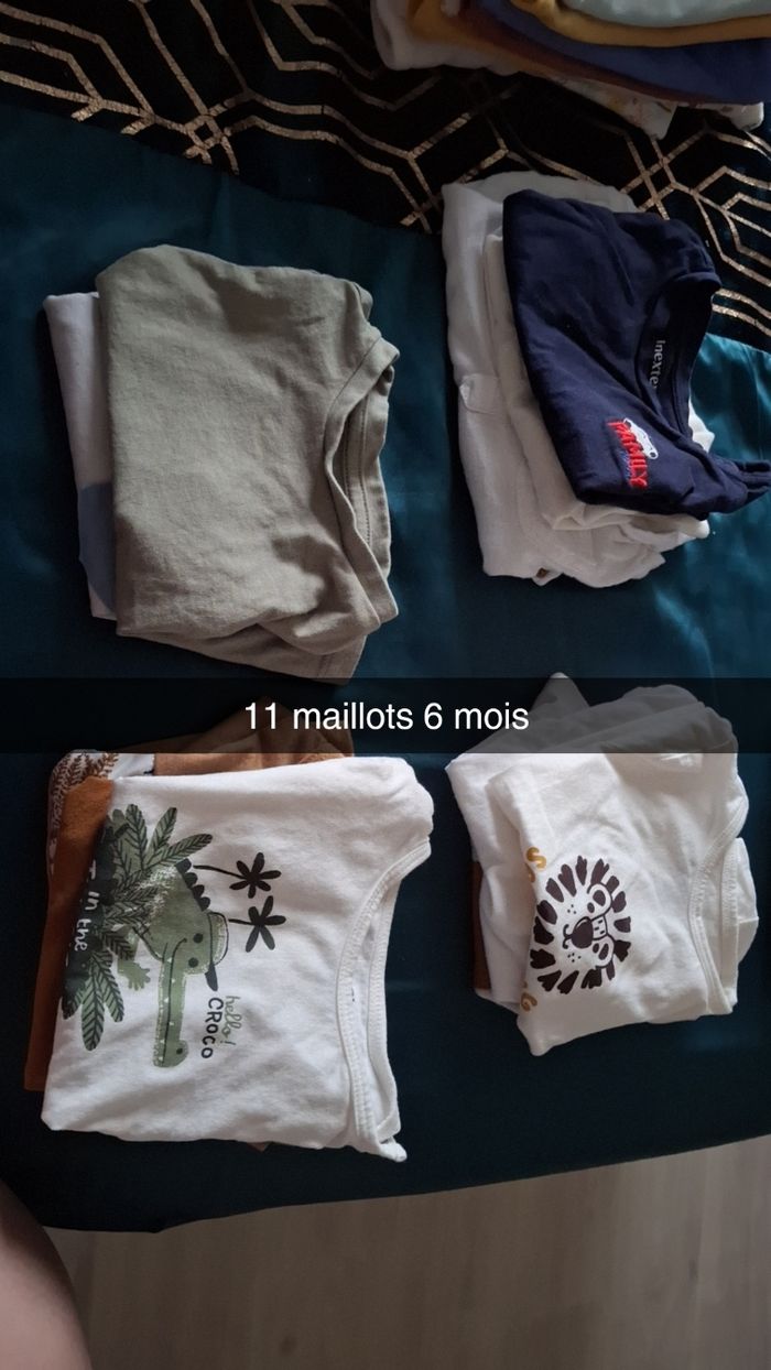 Vends lot bébé garçon 6 mois , lot composé de : - 1 chemise - 1 tenue de cérémonie - 24 bodys - 2 pantalons tricots - 14 shorts - 1 salopette short - 1 salopette jean - 1 jean gris - 11 maillots - 3 pyjamas - 6 pulls Possibilité de bodies tachés mais quasiment aucun