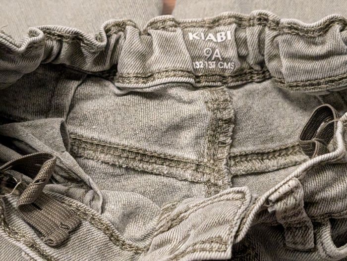 Jean fille 9 ans Kiabi Très bon état, semble être gris, ceinture ajustable, un fil légèrement tiré cuisse arrière gauche