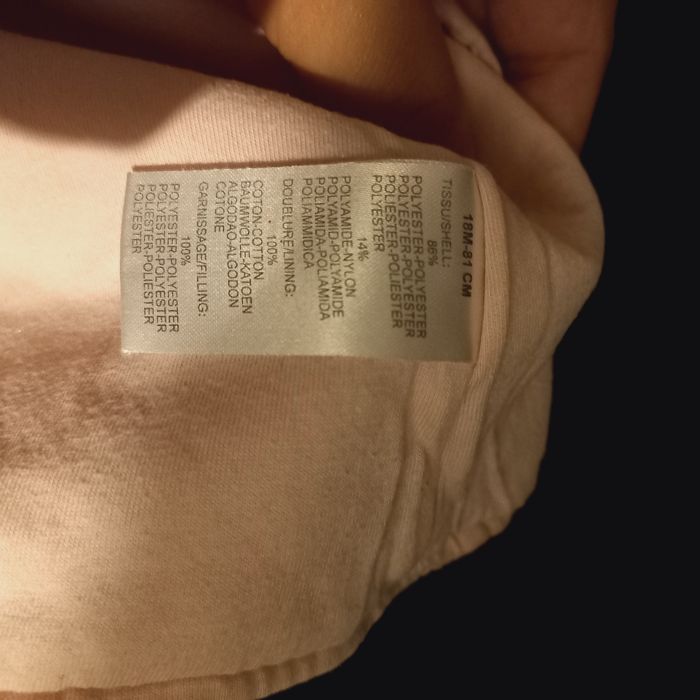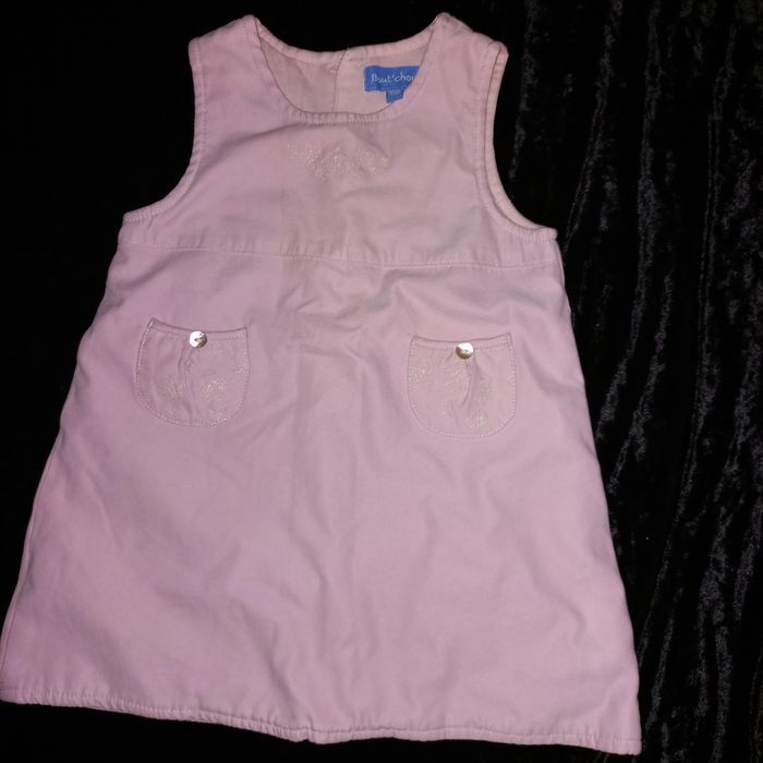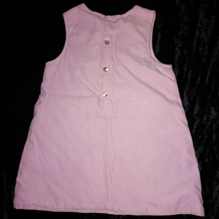 Robe pour enfant 18 mois, en très bon état, couleur violet clair, sans manches, 86 % polyester et 14% polyamide avec doublure 100% coton.