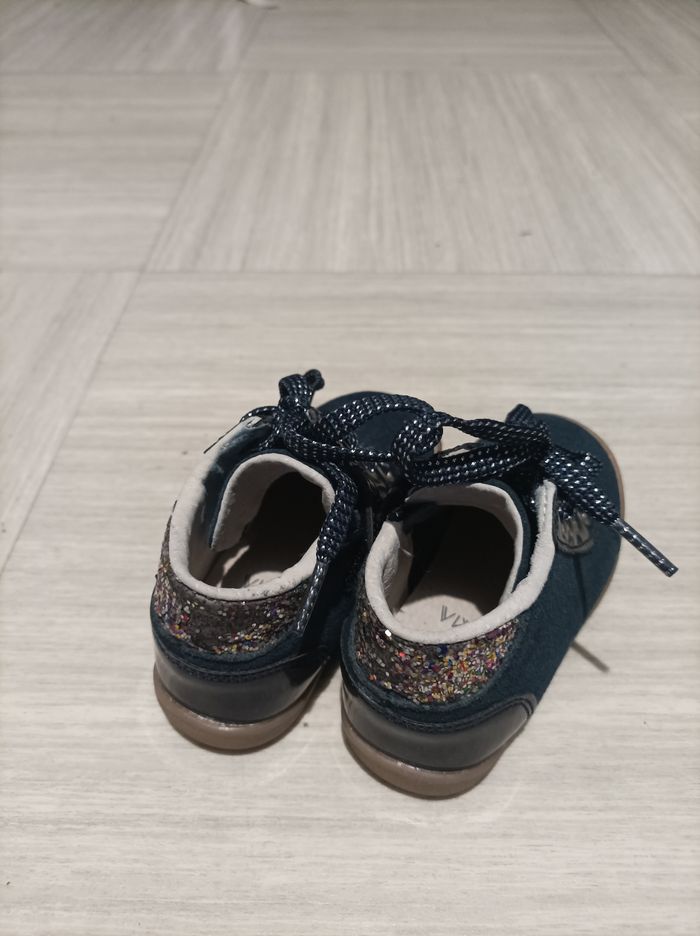 chaussures premier pas  bleu et noire avec des paillettes derrière - photo numéro 2