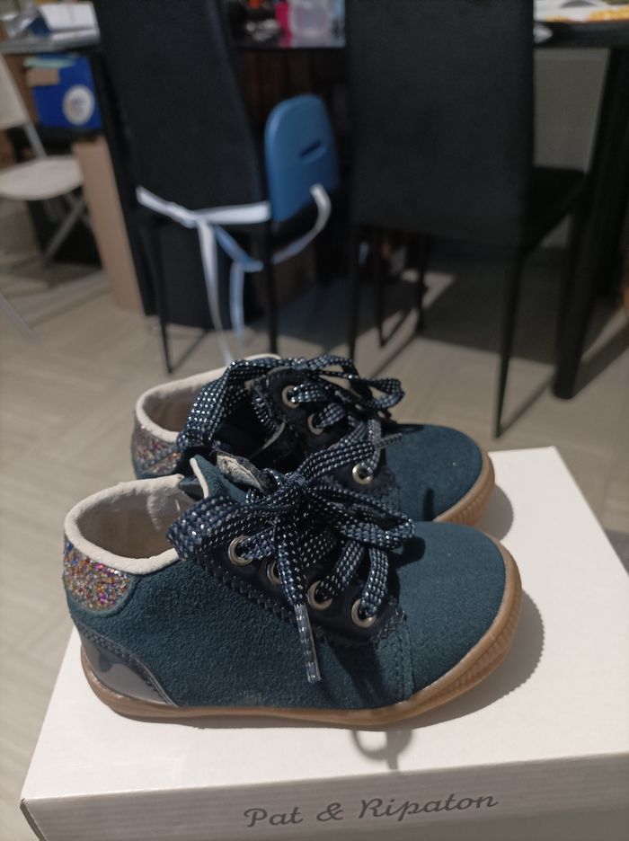 Vend chaussures premier pas Bleue et noir palleitte derrière Pointure 21 Fermeture sur les côtés avec des lacets