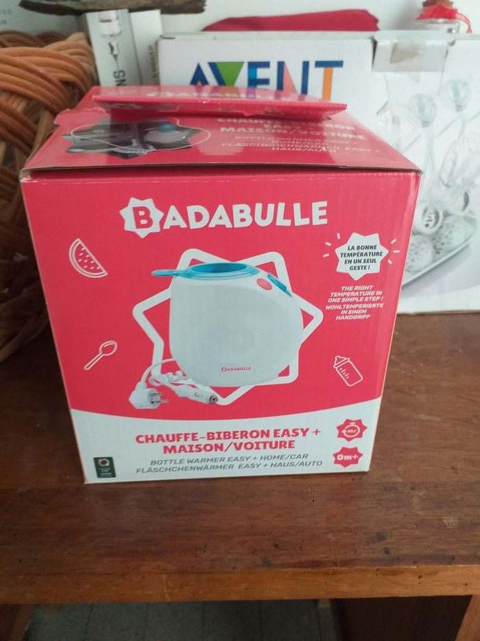 Chauffe-biberon de marque Badabulle, "Easy+", maison 🏡 + voiture 🚗 . Chauffe le biberon 🍼en 90 secondes ⏱. Il est comme neuf, très peu servi chez Pépé et Mémé.
