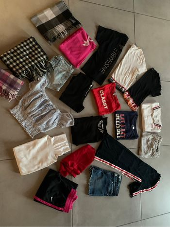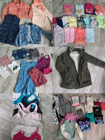 Trois pulls un tee-shirt manches longues (où il y a une mini tâche voir photo) et une robe minnie le tout en très bon état (sauf la tâche). Marque Okaïdi, kiabi