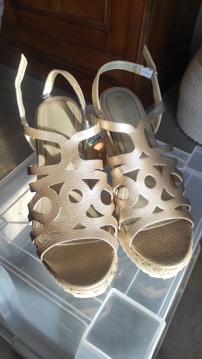 Chaussures compensées "doré" Type espadrilles neuves étiquettés Avec sa boite