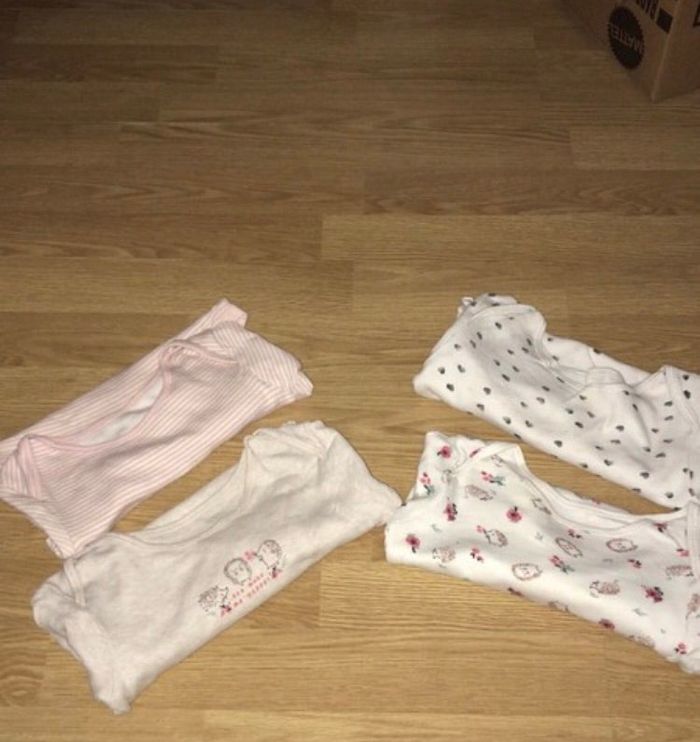 Lot de 4 bodies fille Marque Primark Taille 18/24 mois En bon état l’un des bodies est taché à l’encolure