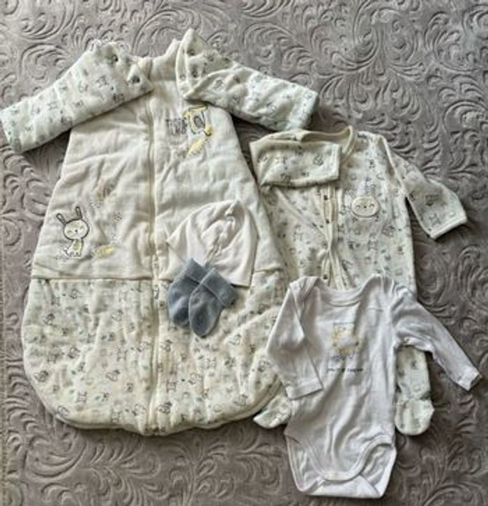 1 pyjama 1 body 1 bonnet 1 paire de chaussettes 1 gigoteuse