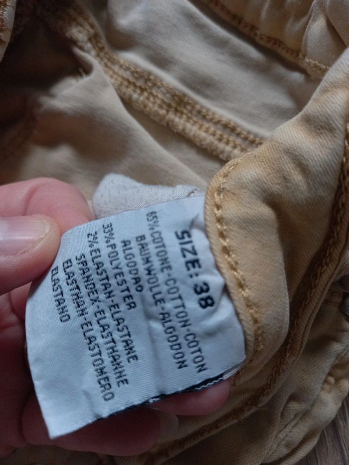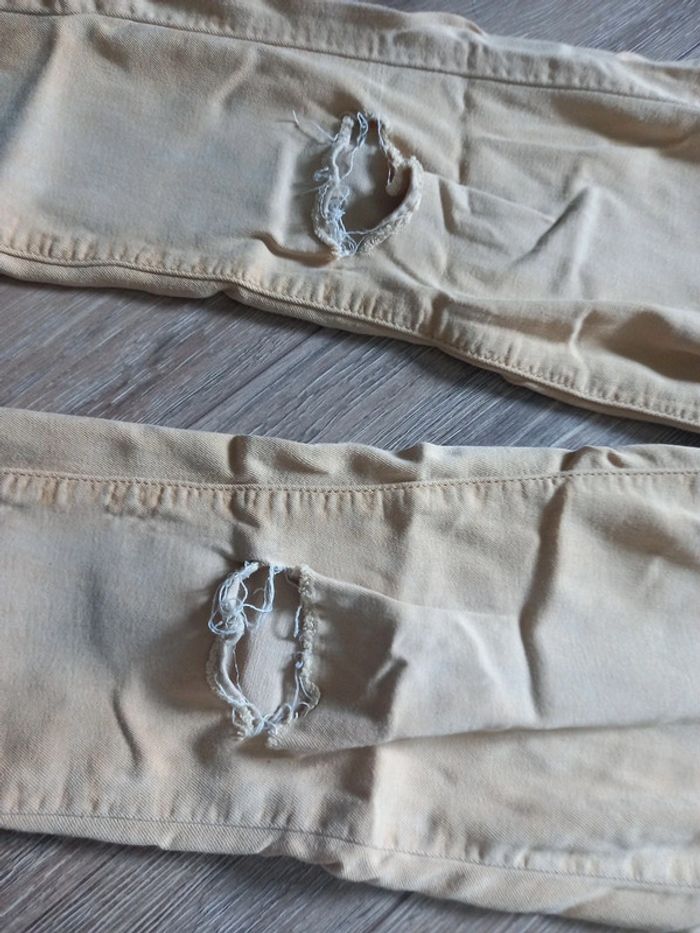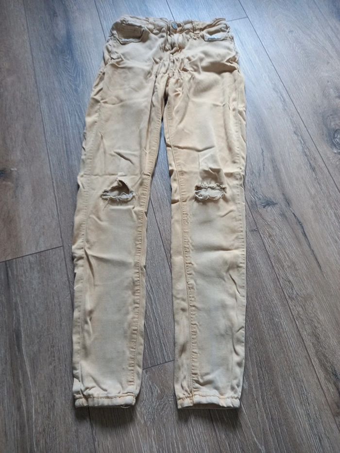 Pantalon jaune avec trou. Usé mais sûrement du à un défaut