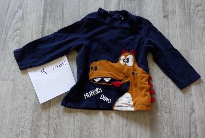 T-shirt manche longue dino 9 mois - photo numéro 1