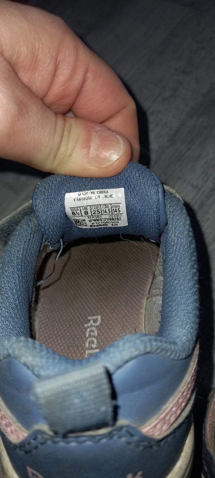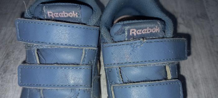 basket reebok bleu et rose. Porté réguliérement scrtach un peu usé