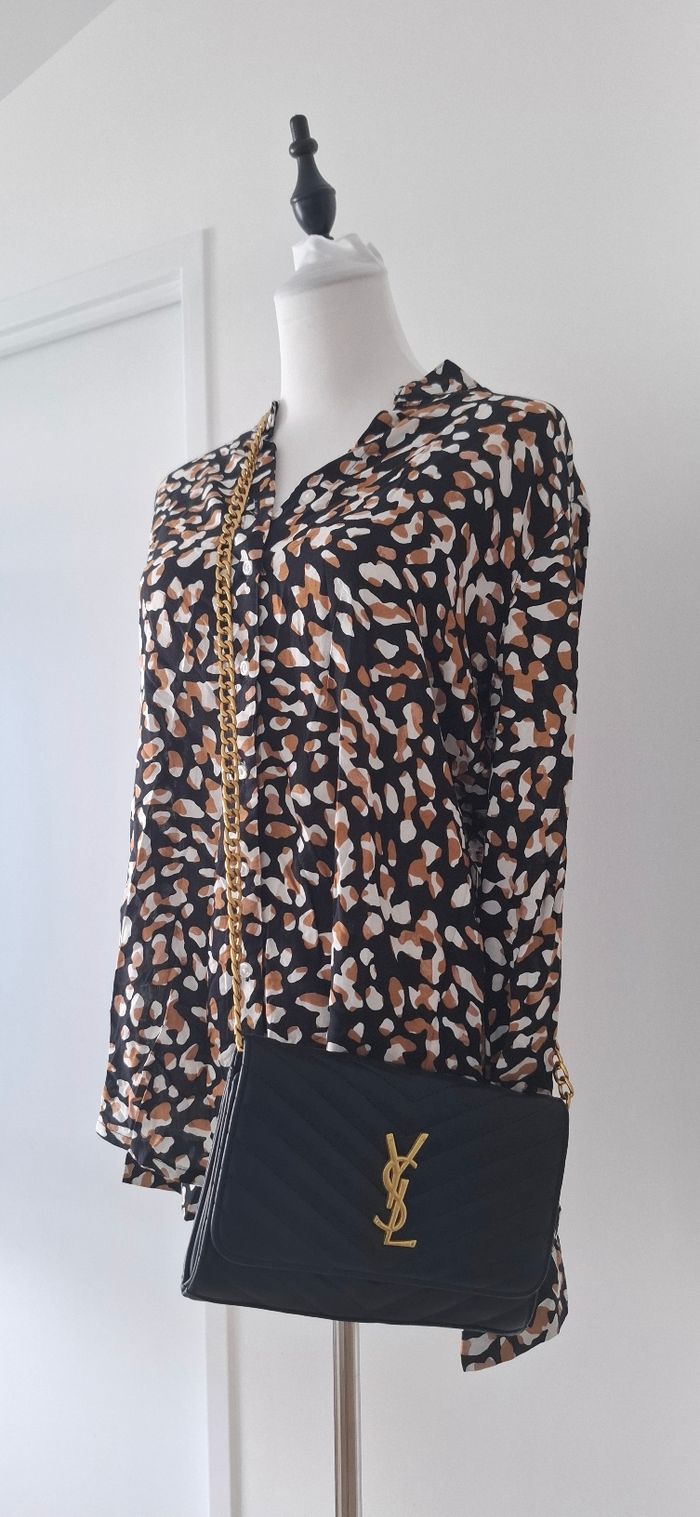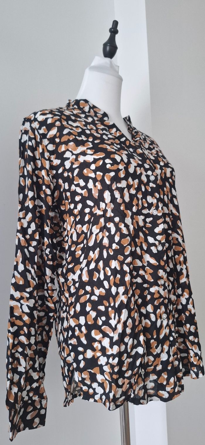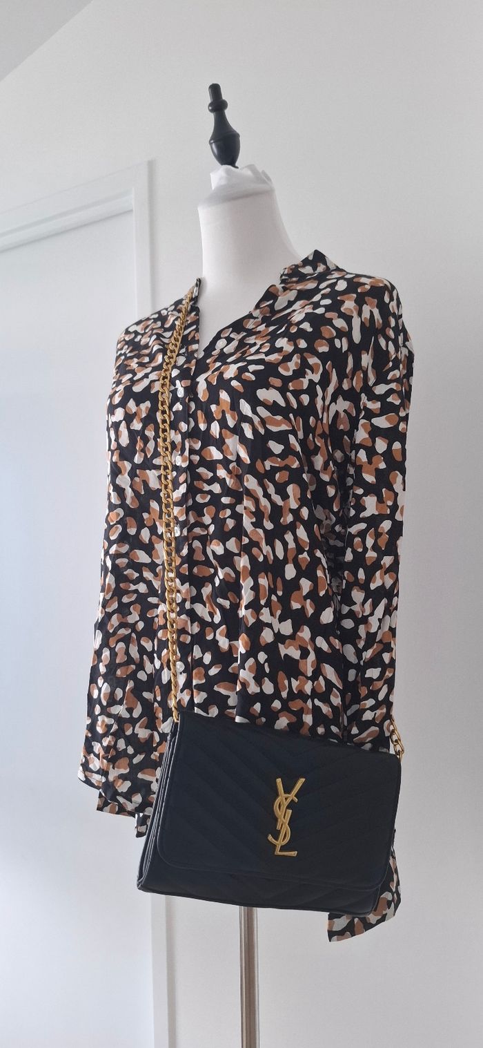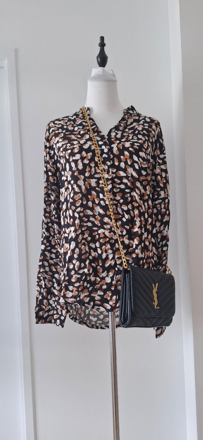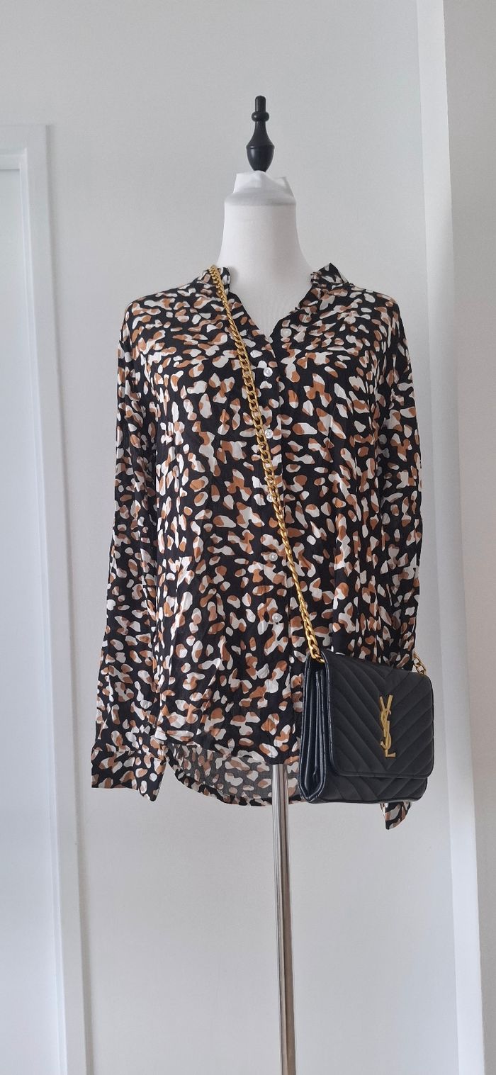 Chemise manche longue à motif comme léopard qui ajoute un plus à la chemise en associant avec un pantalon tissu noir. Tissu confortable et peu portée