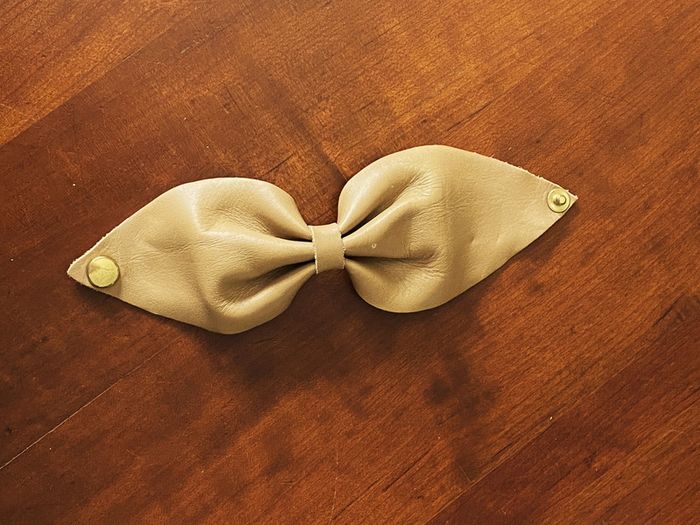 Manchette nœud cuir beige foncé vintage - photo numéro 4