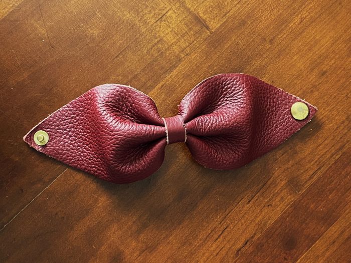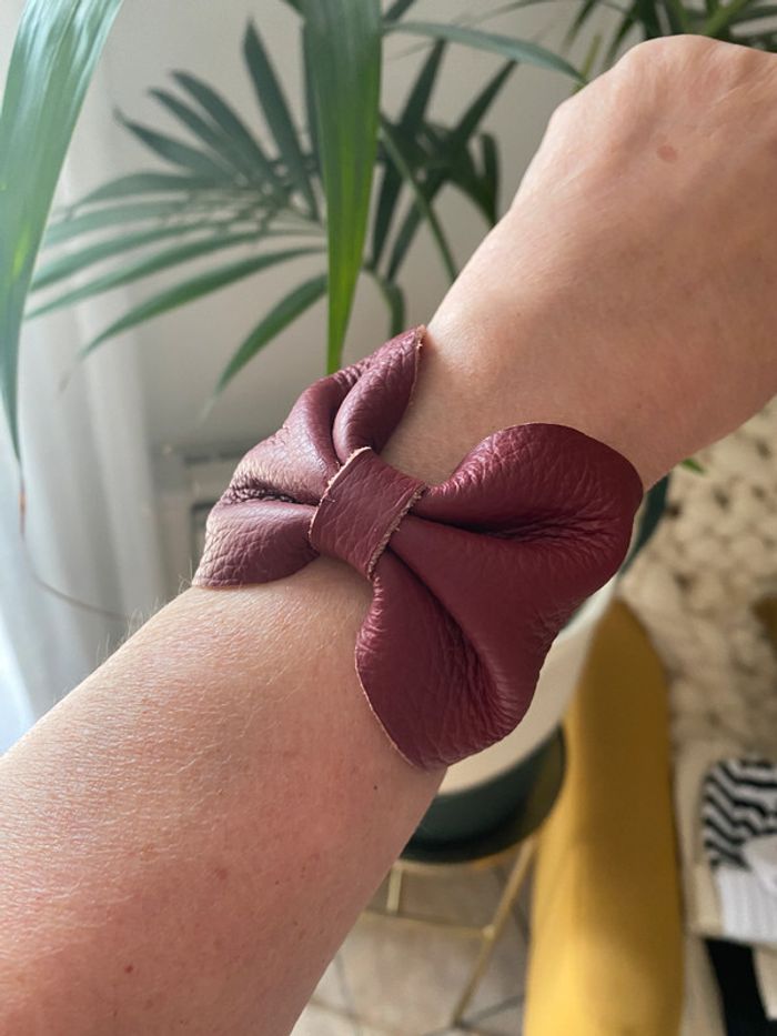 Manchette nœud cuir bordeaux vintage - photo numéro 4