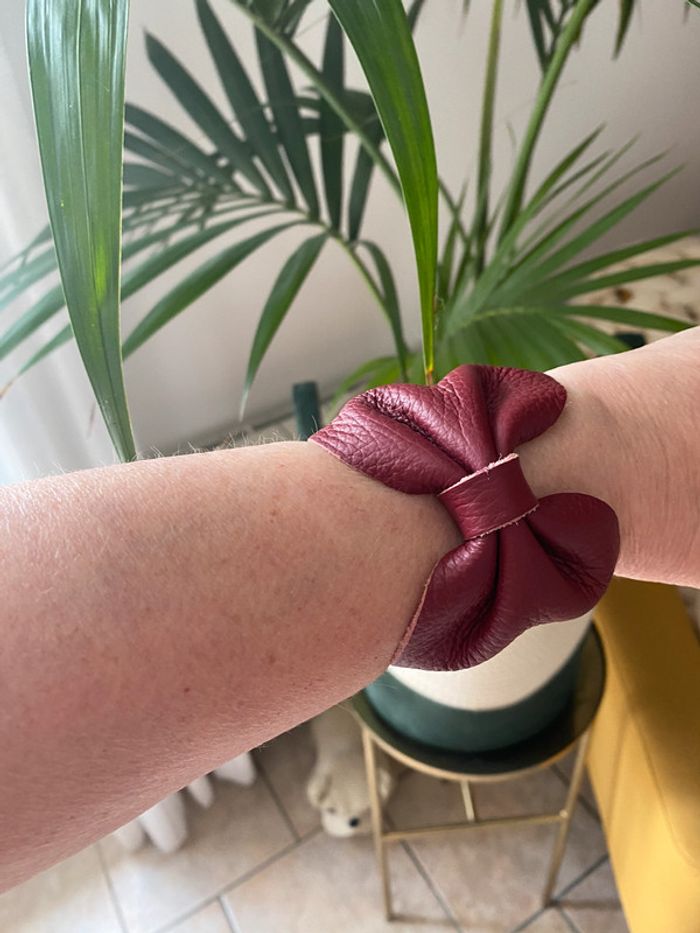 Manchette nœud cuir bordeaux vintage - photo numéro 5