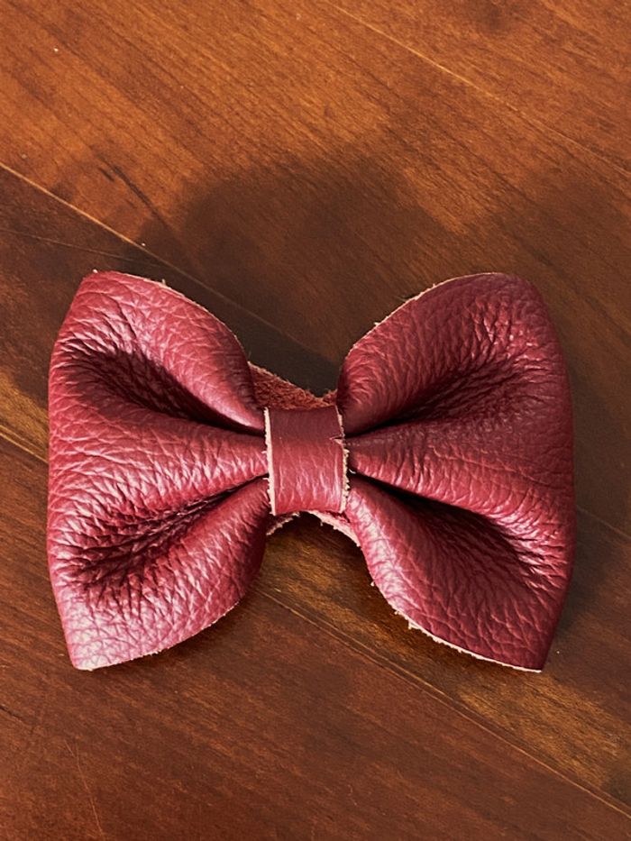 Manchette nœud cuir bordeaux vintage - photo numéro 1