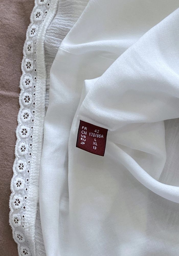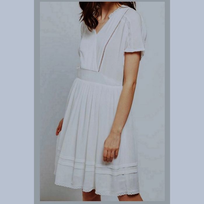 Robe blanche doublée Comptoir des Cotonniers Modèle Amelys En très bon état Juste une petite reprise derrière (voir dernière photo) Taille 42 Avec des bordures en broderie anglaise D’aisselle à aisselle 50 cm Hauteur 98,5 cm Matière principale 100% Viscose Doublure 100% Viscose Dentelle 100% Coton Prix d'achat : 95 euro Cliquez ici pour la voir portée : https://vangoodsov.live/product_details/33073010.html #JosyshopRobe