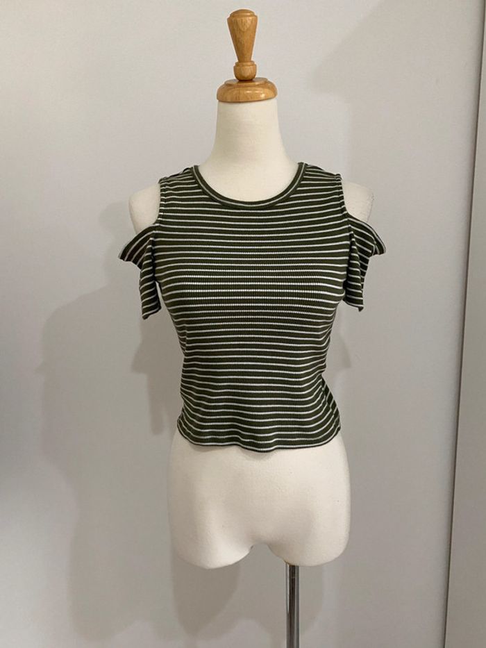 Crop top à rayures Jennifer Très bon état Taille M Coloris vert et blanc 100% Coton #JosyshopTop