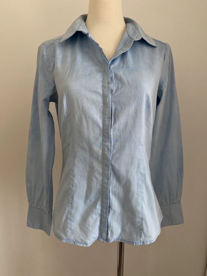 Chemise bleue effet délavé Mango Très bon état Taille M Cintrée Boutonnage caché 100% Coton #JosyshopChemise