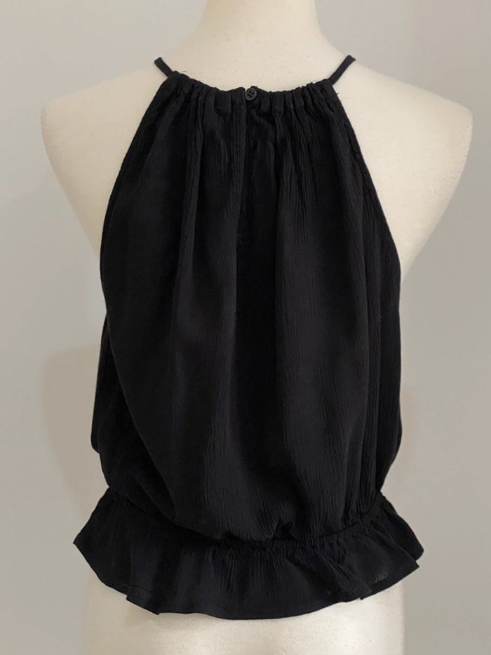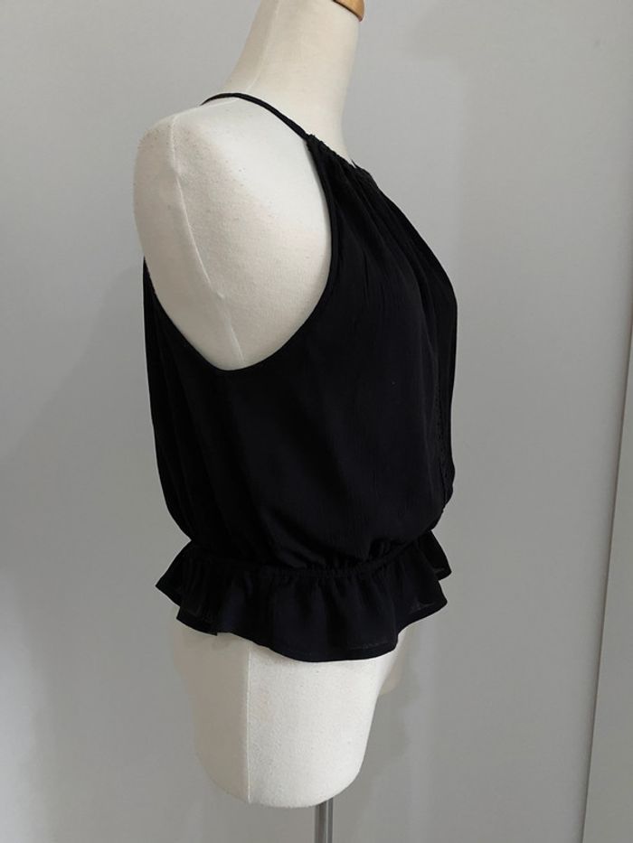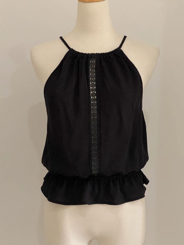 Top noir élastiqué H&M Très bon état Taille 36 Bande de dentelle au milieu Fermé par un bouton au dos 100% Viscose #JosyshopTop