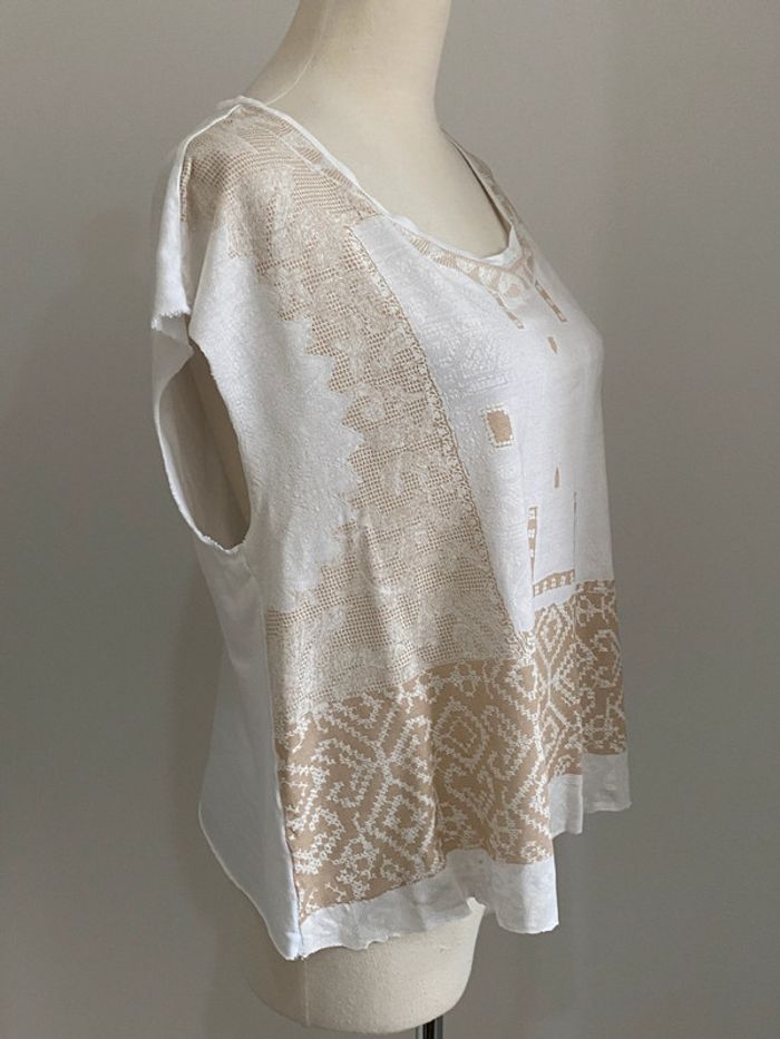 Top blanc imprimé Zara Bon état Taille L Coton fin #JosyshopTop
