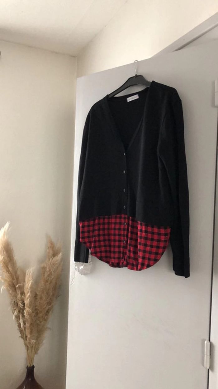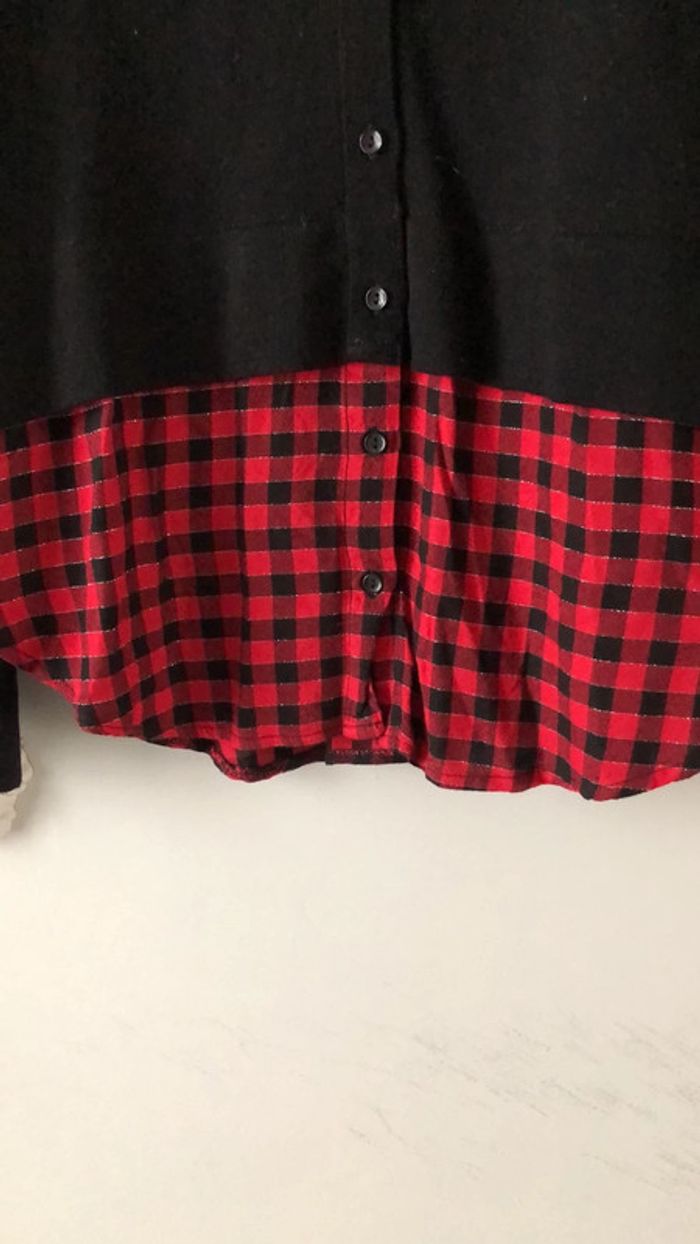pull effet double chemise à carreaux