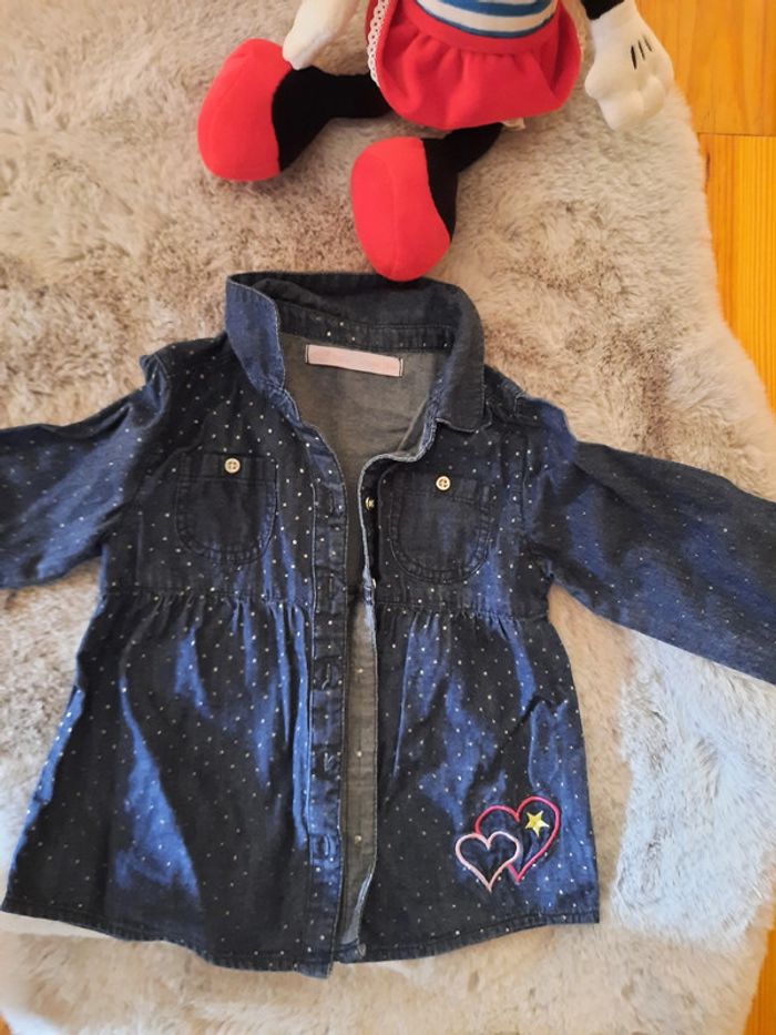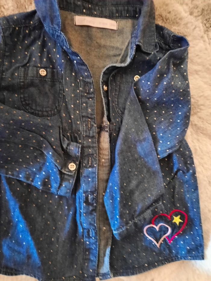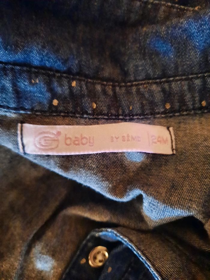 Jolie tunique en jeans avec petits pois et cœurs en taille 24 mois gemo en bon état. Un peu de pois se sont estompés cf photo 4 #delp36_24mois #chemise #jeans #24mois #2ans #gémo