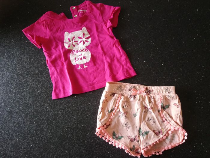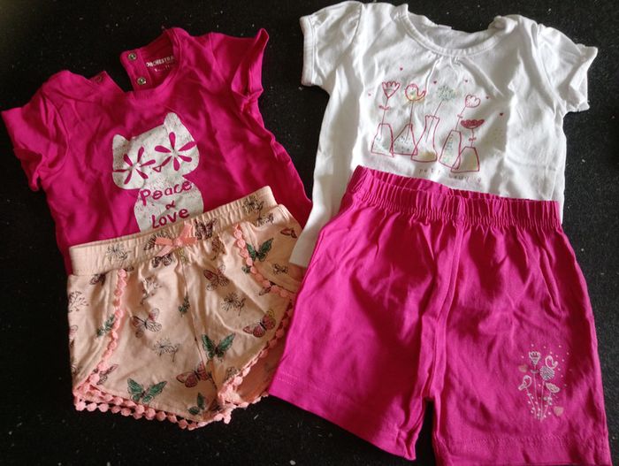 Lot de 2 tenues comprenant 2 t-shirts et 2 shorts pour l'été très peu porté #delp36_9mois