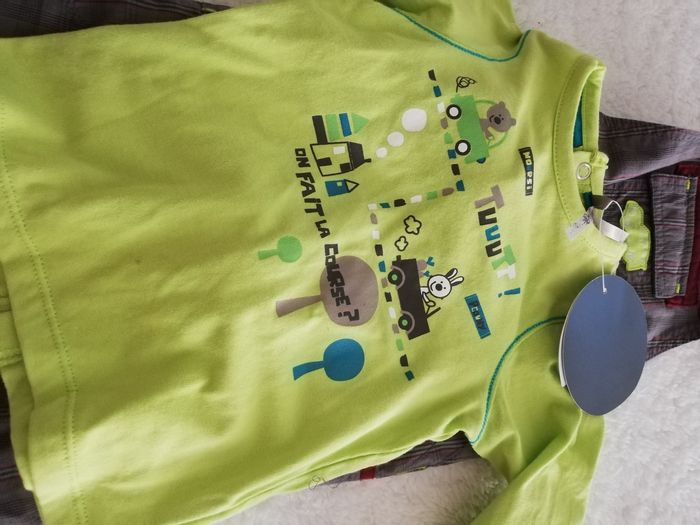 Ensemble salopette et tee shirt manche longue garçon vert 6 mois orchestra - photo numéro 2