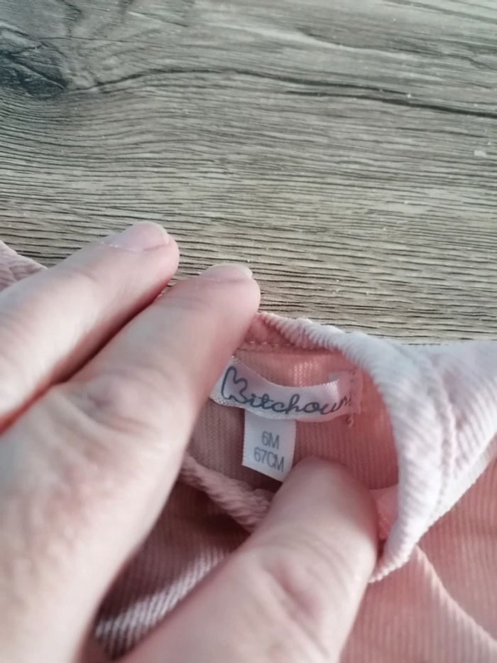 Bonjour, je vends cette robe sans manches rose pâle en velours taille 6mois en très bon état. Lavé maison non fumeur.