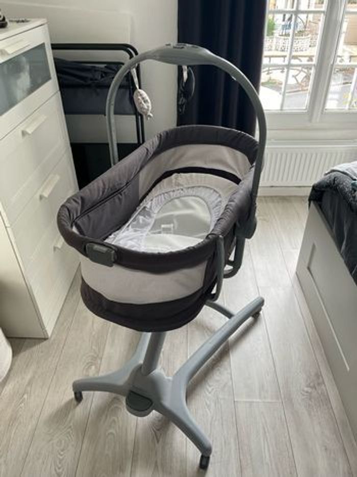 Très bon état. Utilisé seulement en cododo pendant 2 mois. Il fait : - Berceau - Transat - Chaise haute - Chaise de table Je vends également le matelas que j’ai acheté avec. J’ai payé le tout 270€ en 2023.