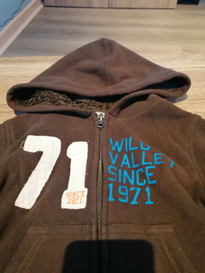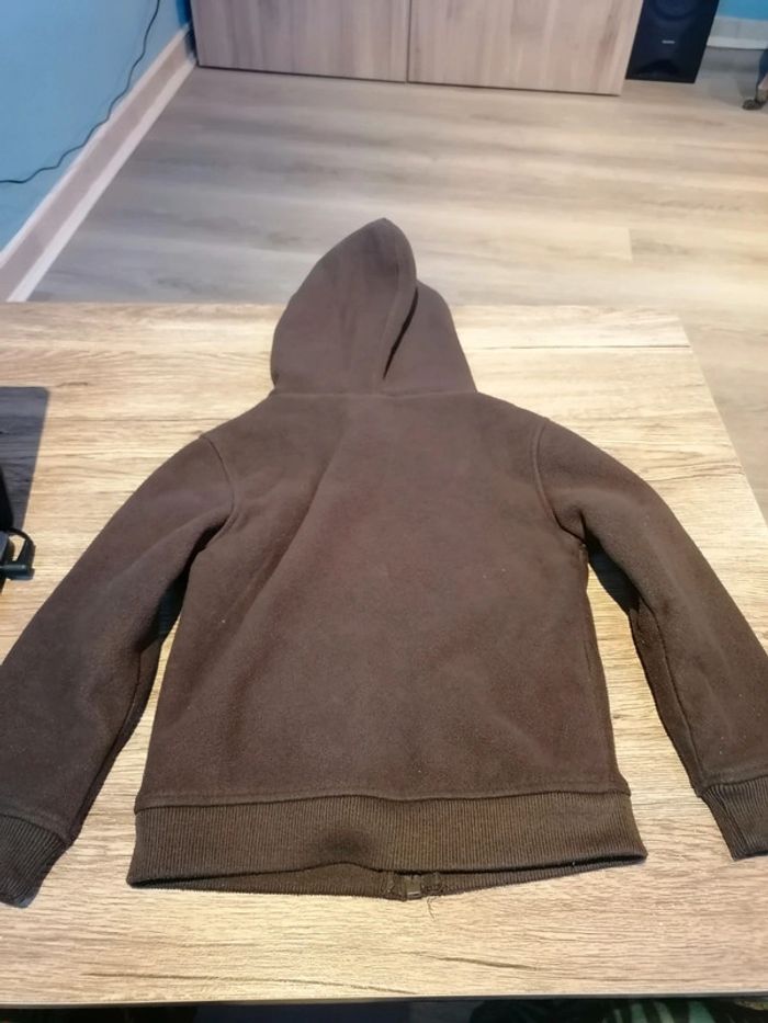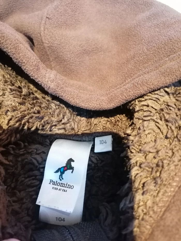 Bonjour, je vends ce gilet à capuche marron de la marque Palomino taille 4ans en très bon état. Lavé maison non fumeur.