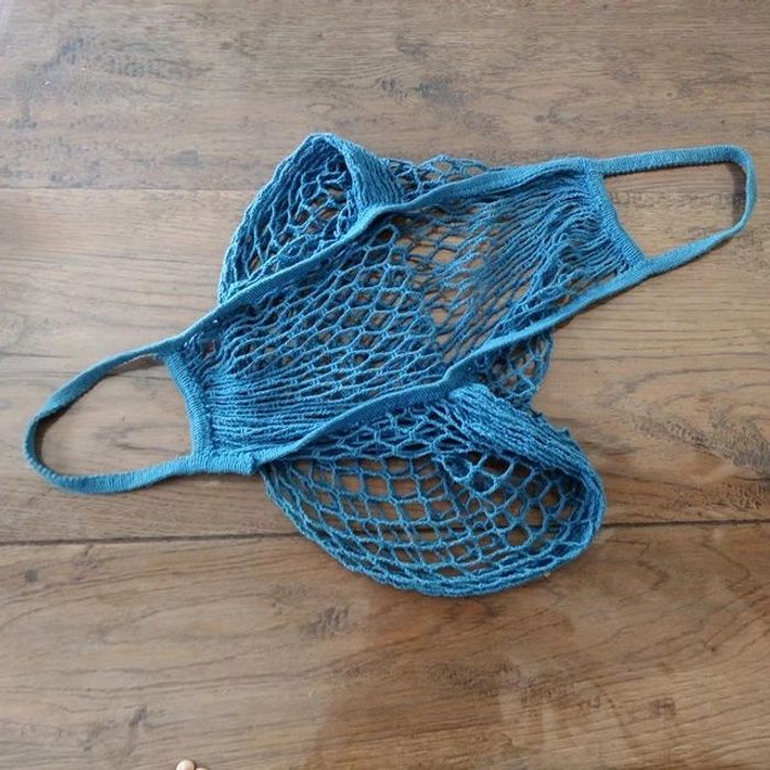 vend un filet à provision / course de couleur bleu vintage / ancien dimensions: 40x30 cm sans les hanses #stef62180_vintage #sacvintage #vintage #filetvintage