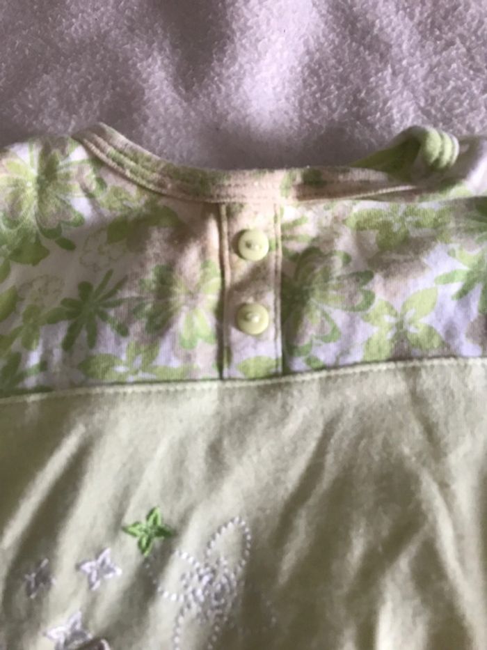 3 pyjamas fille 3 mois État satisfaisant: le vert un peu taché au col et le Minnie le dessin s’enlève un peu. Le blanc bon état