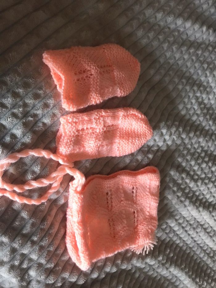Bonnet et moufles en laine fait main - photo numéro 3