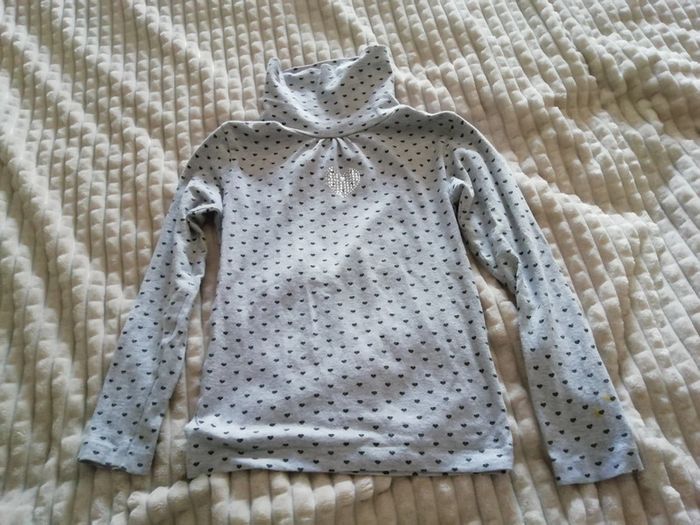 Haut manches longues col roulé gris avec cœurs taille 5ans - photo numéro 1