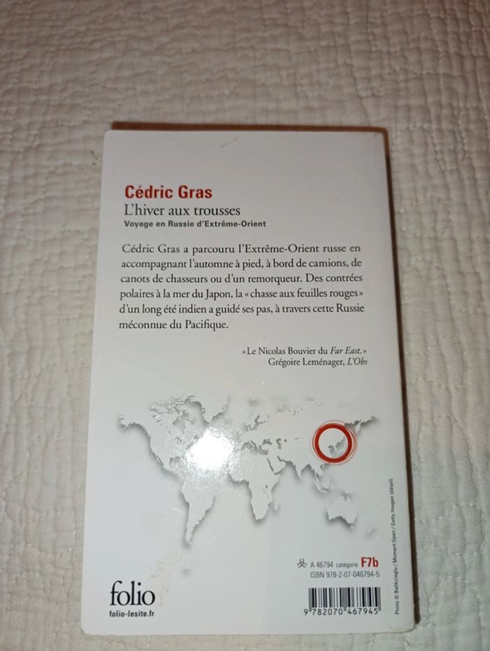 Livre en bon état L'hiver aux trousses de Cédric Gras Cédric Gras a parcouru l'Extrême-Orient russe en accompagnant l'automne à pied, à bord de camions, de canots de chasseurs ou d'un remorqueur. Des contrées polaires à la mer du Japon, la "chasse aux feuilles rouges" d'un long été indien a guidé ses pas, à travers cette Russie méconnue du Pacifique #lhiverauxtrousses #cedricgras #cedricgraslhiverauxtrousses #lililesyeuxbleuslivres