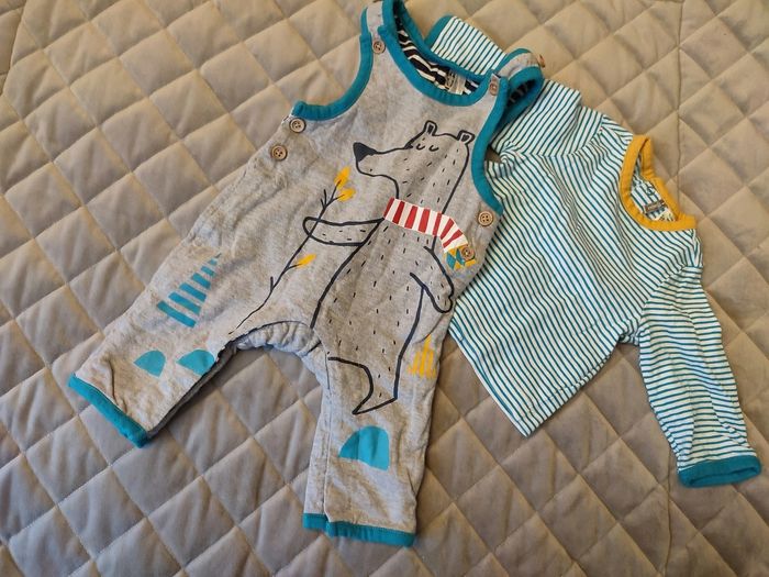 1 combinaison et 1 ensemble salopette/t-shirt. Hiver.