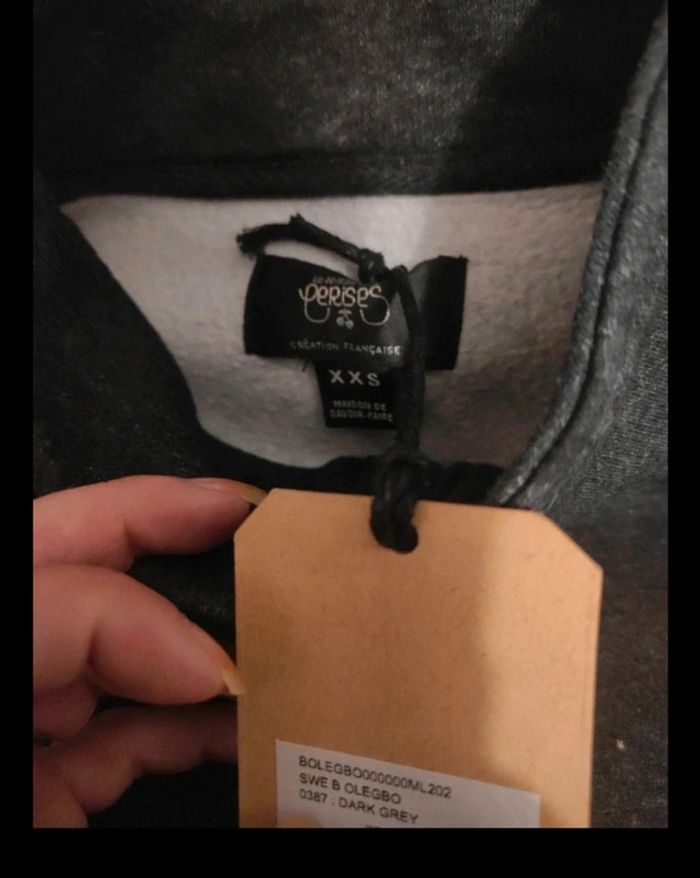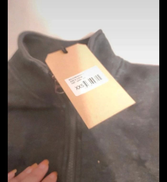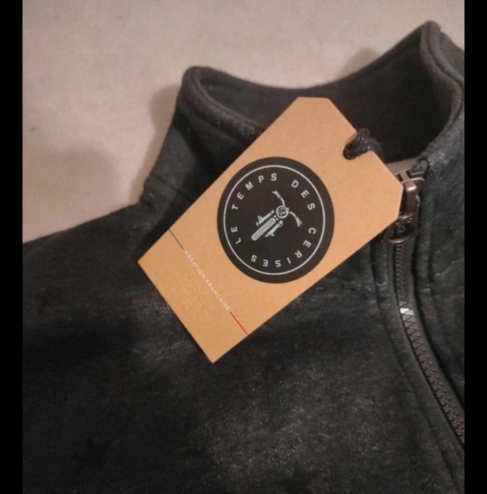 Gilet zippée gris écritures orange taille xxs soit 12 ans longueur 55 cm du col devant au bas sous aisselle 45 cm #marjotibogarcon12