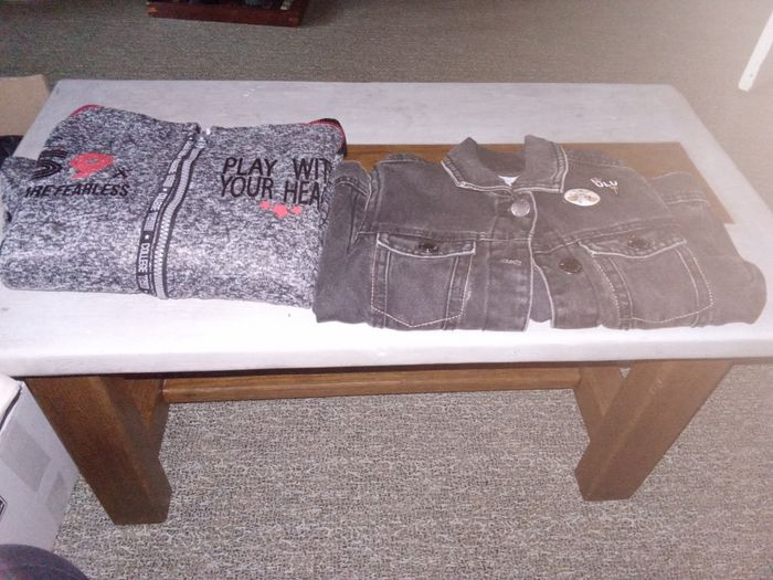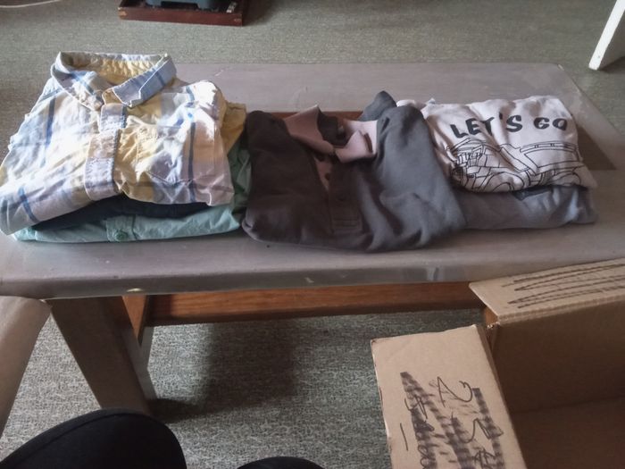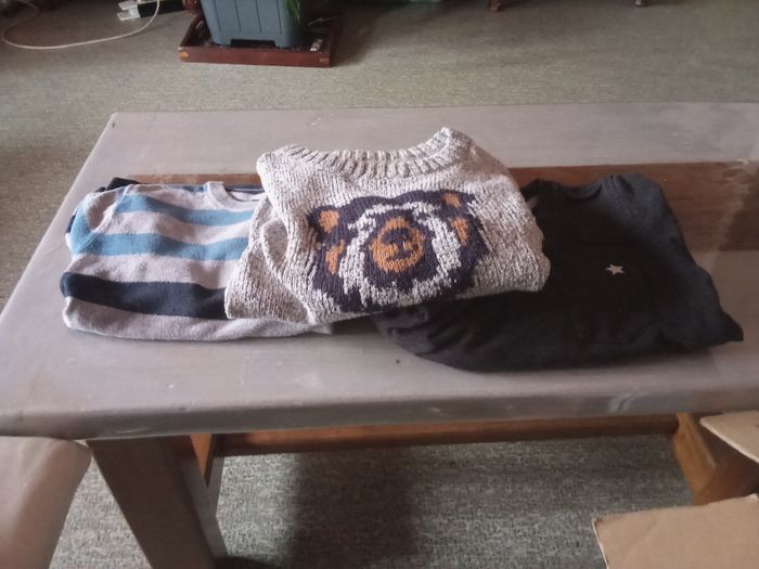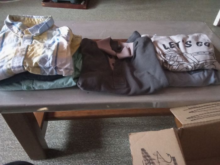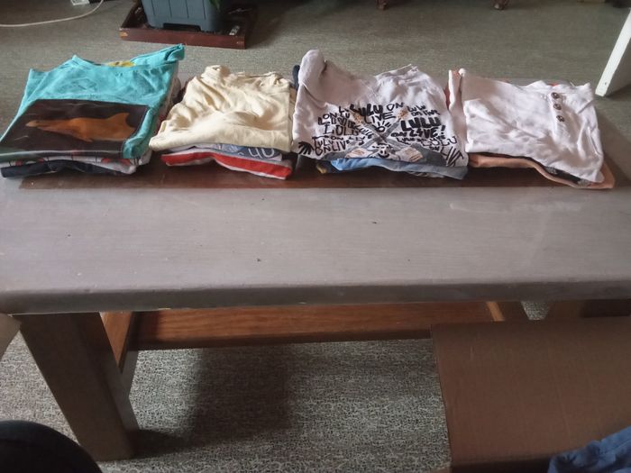A vendre deux carton vêtement garçon en 6 ans où dedans il y a jean pulls manteau veste pantalon court maillon manche court il a un peux de touts voir photo .mait très propre est troué ni tâche .