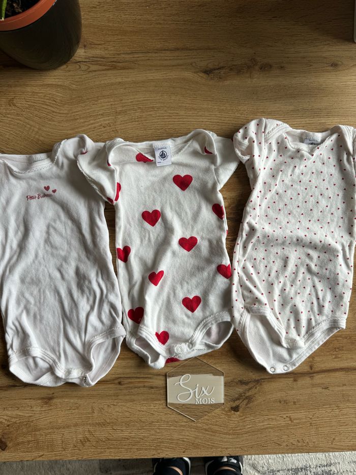 Lot de body petit bateau, Seul celui avec écrit petit bateau est un peu plus passé que les autres. Très bon état général.
