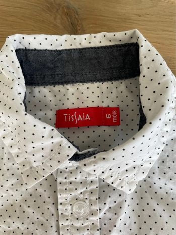 Chemise à manches longues blanche à pois noir 6 mois Tissaia Très bon état