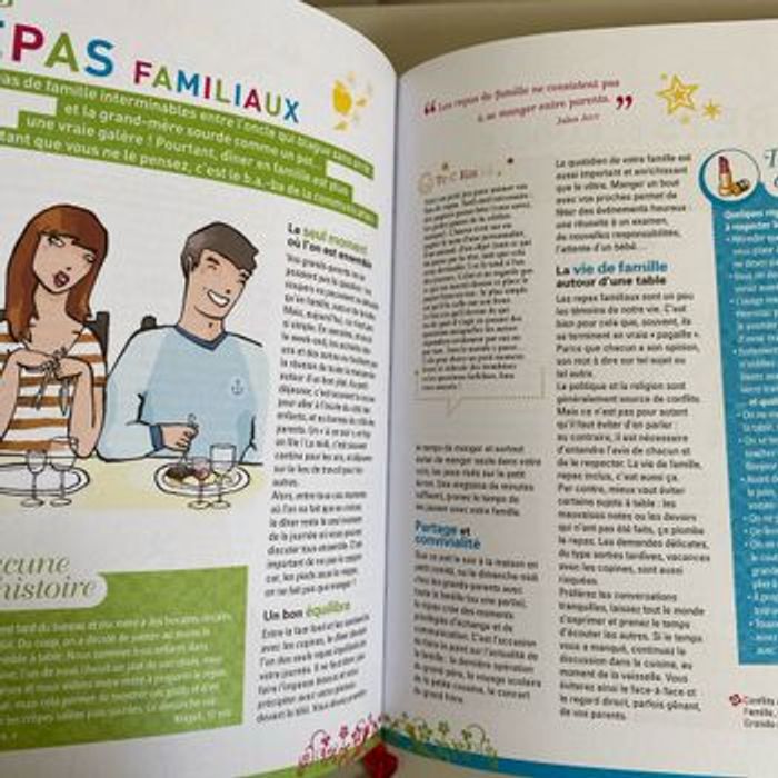 Ce livre aborde tous les sujets qui intriguent et passionnent les filles : le corps, la psychologie et le bien être, la famille, la mode et la beauté, l’amour et l’amitié, les études, la musique, la télé… Pas moins de 236 entrées sont expliquées sans tabou ni démagogie, de l’alimentation au téléphone portable, en passant par le chagrin d’amour, l’argent ou les complexes physiques. Tantôt sérieux, parfois léger mais toujours respectueux, ce livre est le complice incontournable de toute une génération de filles bien dans leur peau