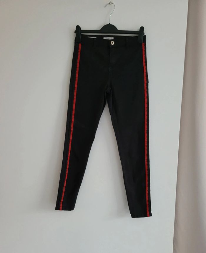 🌷 Jean noir à bande rouge🌷 Bershka 🌷Taille S - photo numéro 1