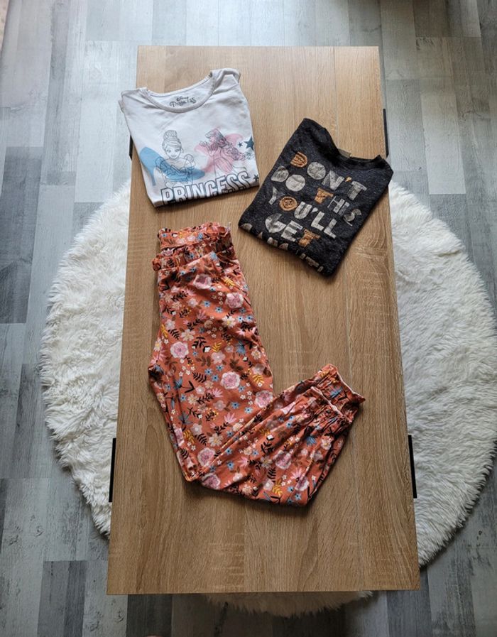 🌷Très joli pantalon leger de marque C&A en très bon état 🌷Tee shirt Princesses Disney manches courtes en bon état 🌷Tee shirt Zara manches longues léger en très bon état 🌷Peu porté 📦 Envoi rapide & soigné 📦 💲 Réductions activées : 5% dès 2 articles, 10% dès 3 articles & 20% dès 5 articles💲 🏵 Plusieurs vetements taille 7 ans 🏵 Manon9492_7ans