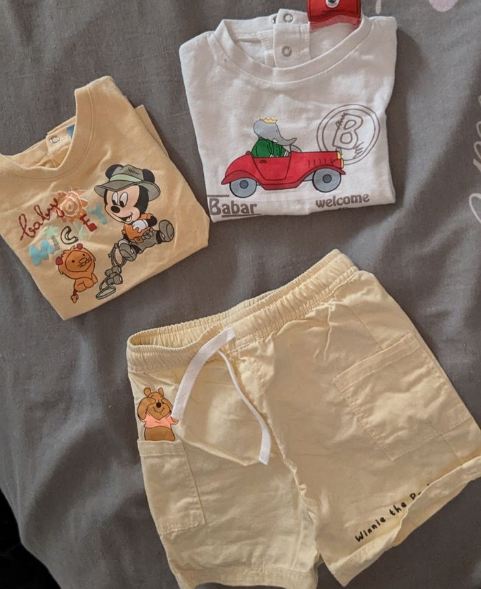 Lot disney Tee shirt Mickey et Babar Short plage Winnie l'ourson 18 mois. 2€
