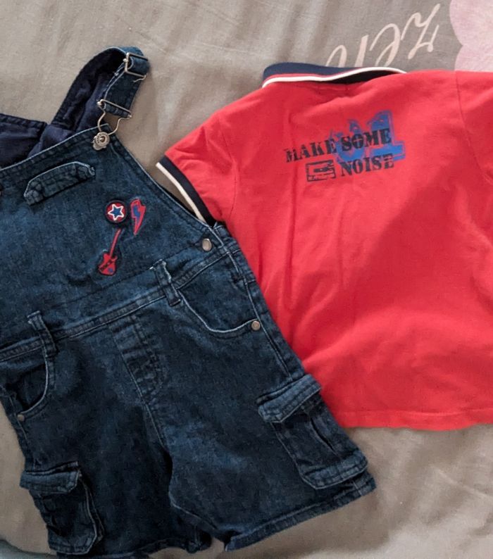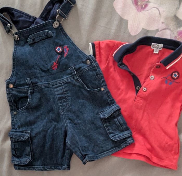 Salopette nano avec son Polo rouge. 🎸 Taille 18 mois 5€