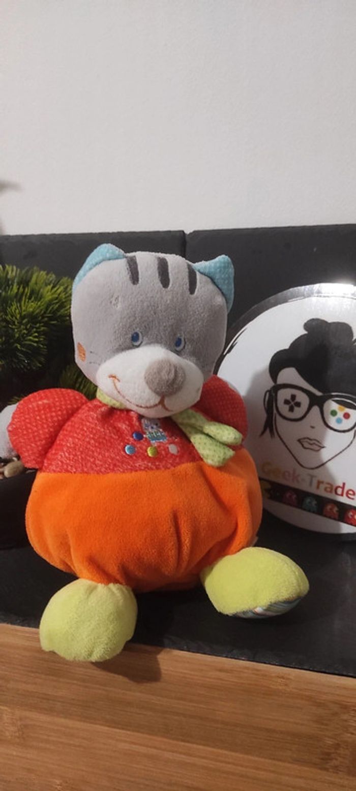 doudou peluche chat mots d'enfants rouge orange vert echarpe boule balles gris - photo numéro 1