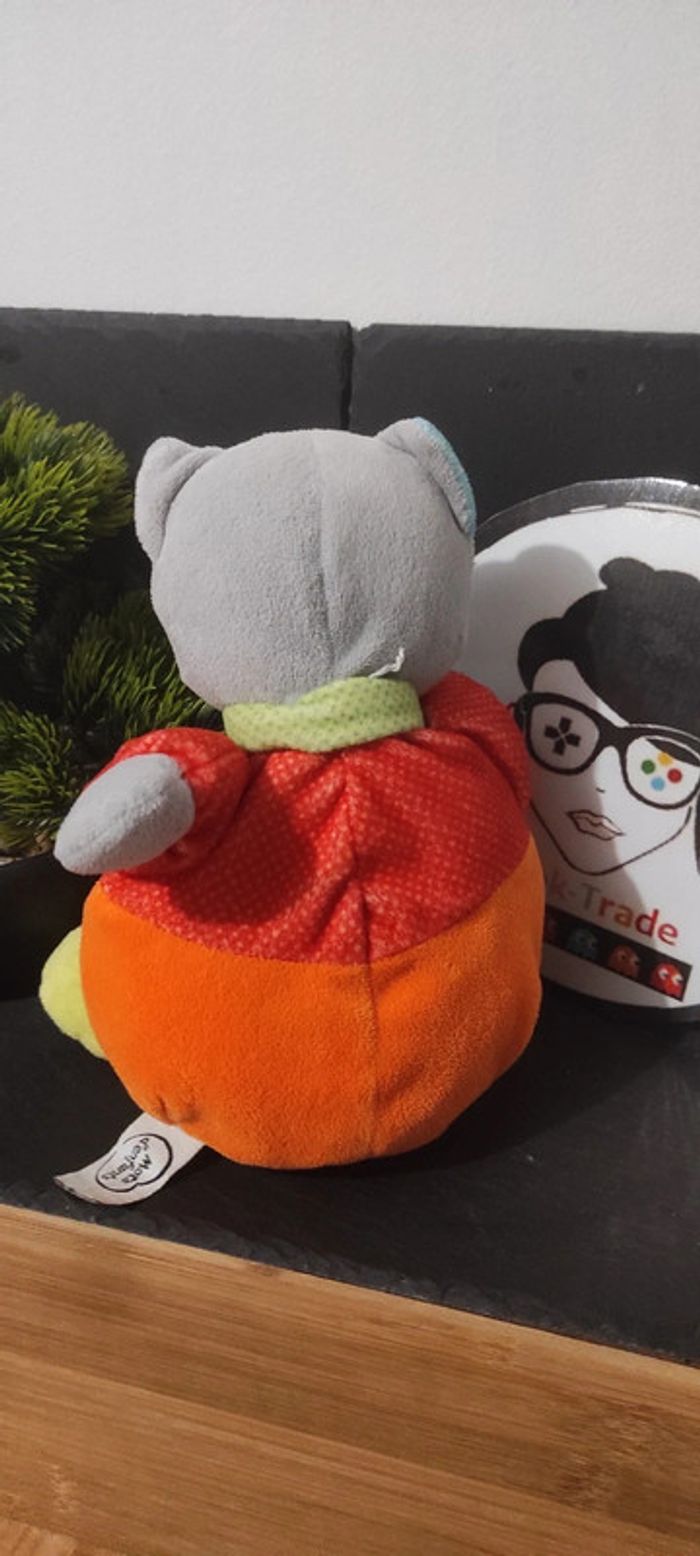 doudou peluche chat mots d'enfants rouge orange vert echarpe boule balles gris - photo numéro 2